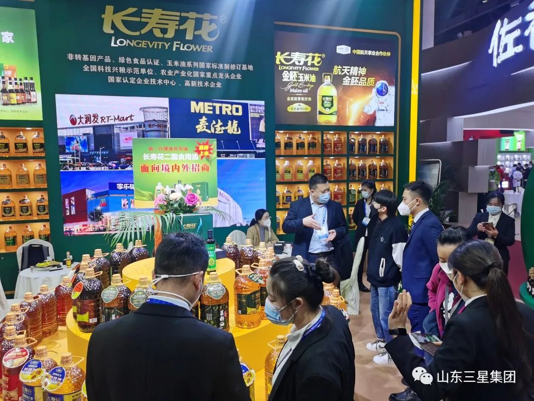 走進長壽花食品展區,“長壽花開”門景醒目,黃綠色調清新宜人,長壽花食用油、調味品及糧食產品全線亮相,吸引往來客商駐足洽談。參展期間,長壽花2022新一代健康食用油——甘油二酯食用油首發亮相,面向境內外招商,“營養健康,輕酯減負”的產品特性廣受關注、反饋熱烈。“箸下”調味品系列更是入駐調味直通車“糖酒會專場”,線上互動,氣氛活躍。