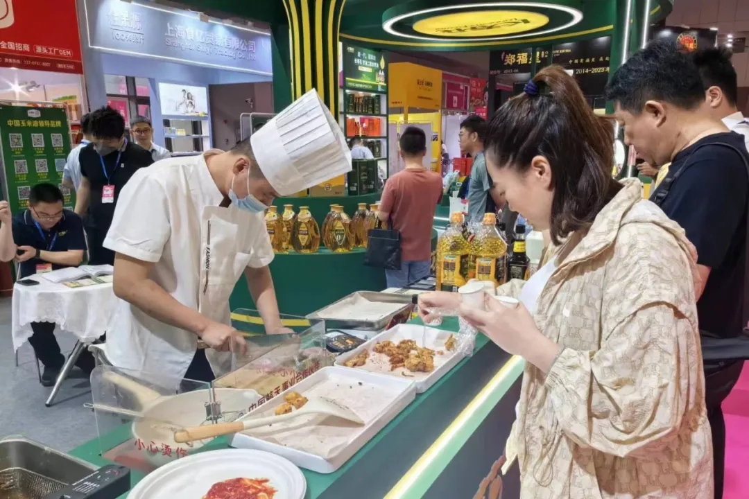 健康好油,歡樂試吃。美食大廚用長壽花糧油產(chǎn)品現(xiàn)場制作的炸酥肉、炸雞、炸豆腐丸子等特色小吃吸引了眾多觀展人員前來品嘗,得到了大家的一致好評。