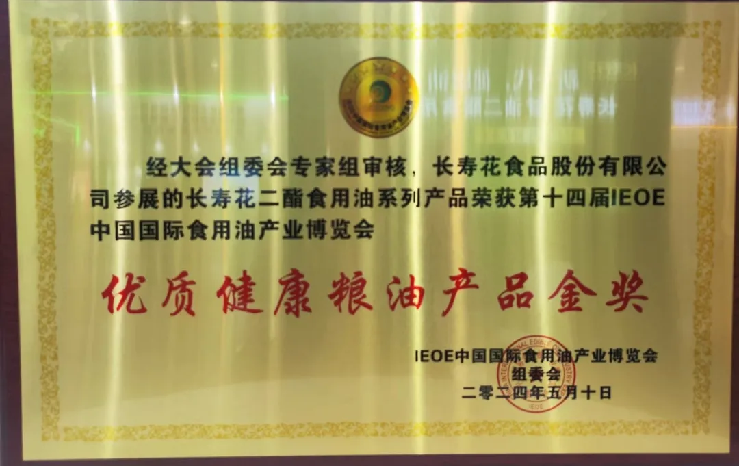 在萬眾矚目的第十四屆IEOE中國油博會、IGPE中國糧油展上,長壽花二酯食用油憑借卓越品質與專業研發理念,榮耀加冕“優質健康糧油產品金獎”!“優質健康糧油產品金獎”不僅是對長壽花二酯食用油的肯定,也是對長壽花食品長期以來致力于推動食用油行業健康發展努力的認可。這份榮譽,凝聚了長壽花全體同仁的智慧與汗水,是團隊合作精神的結晶,更是對健康生活倡導的有力回應。